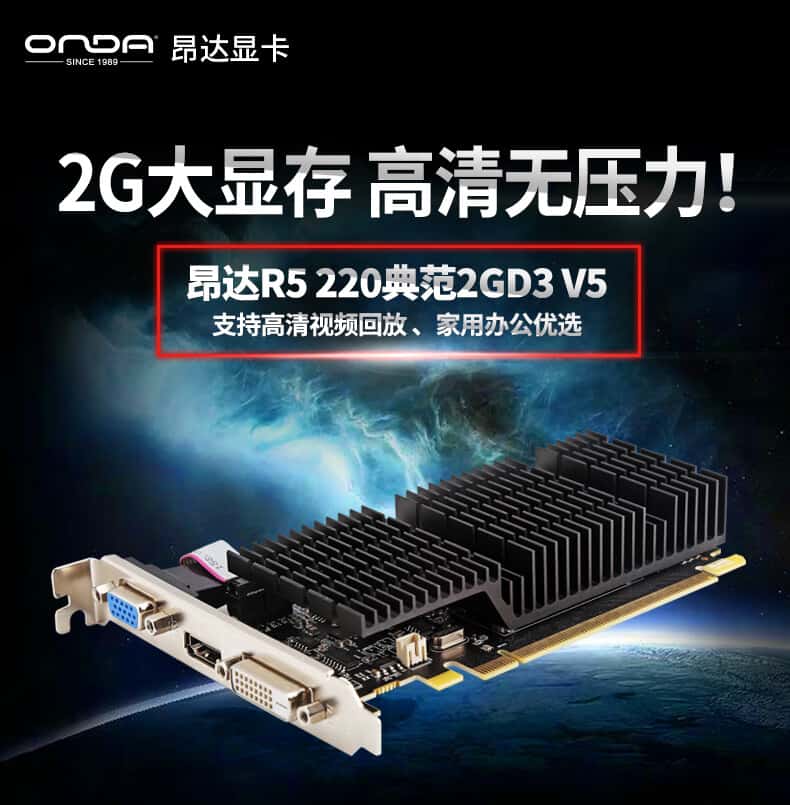 昂达(ONDA)R5220典范2GD3V5办公娱乐独立显卡
