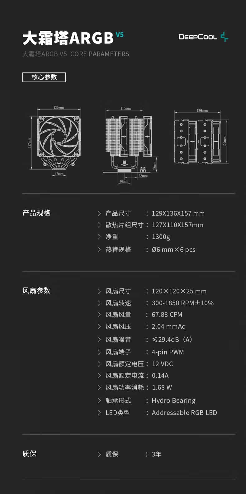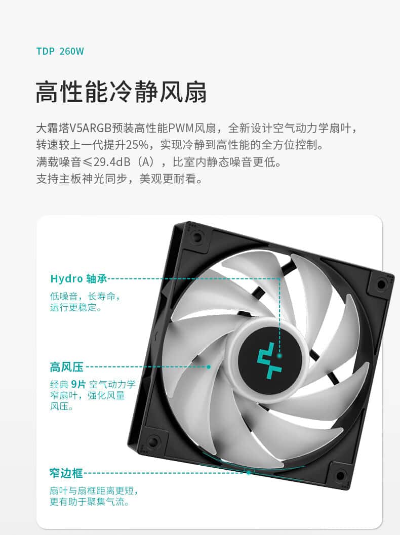 九州风神(DEEPCOOL)CPU散热器大霜塔V5ARGB风