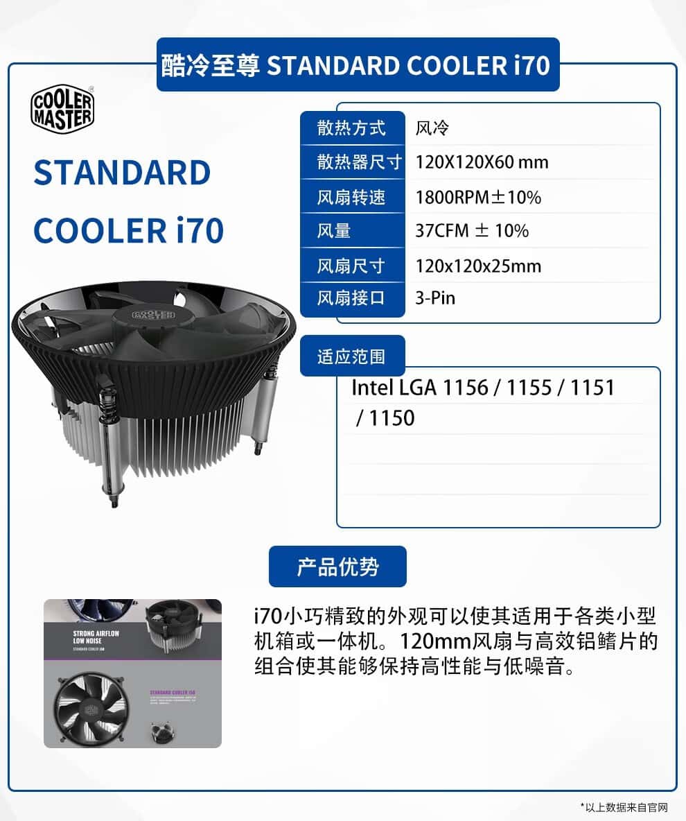 酷冷至尊i30i50i70下压式电脑主机组件CPU散热器静音