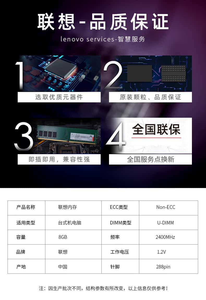 联想(Lenovo)8GBDDR42400台式机内存条