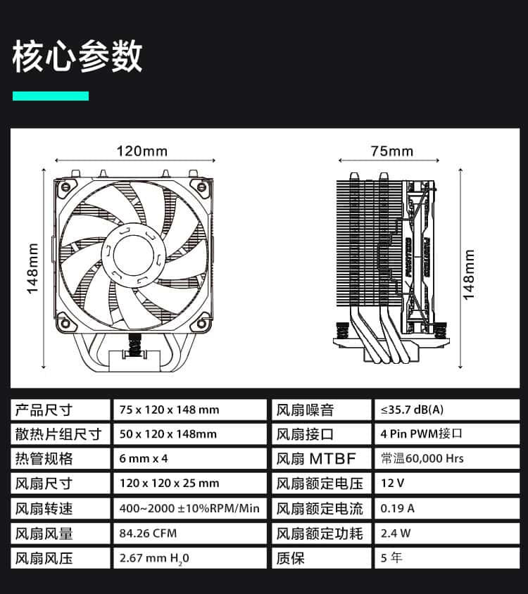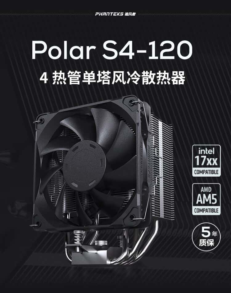 追风者(PHANTEKS)Polar伯乐S4塔式CPU风冷散