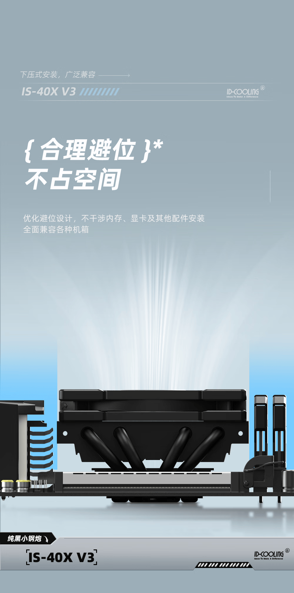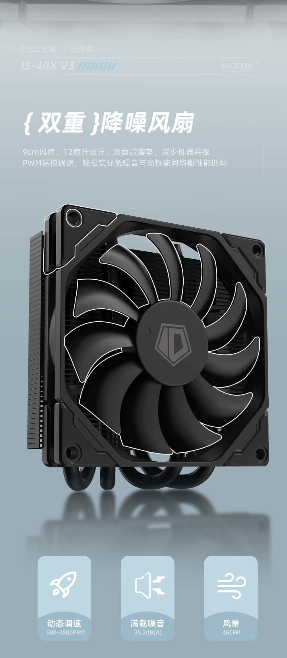 ID-COOLING下压式CPU风冷散热器4热管直触9CM风