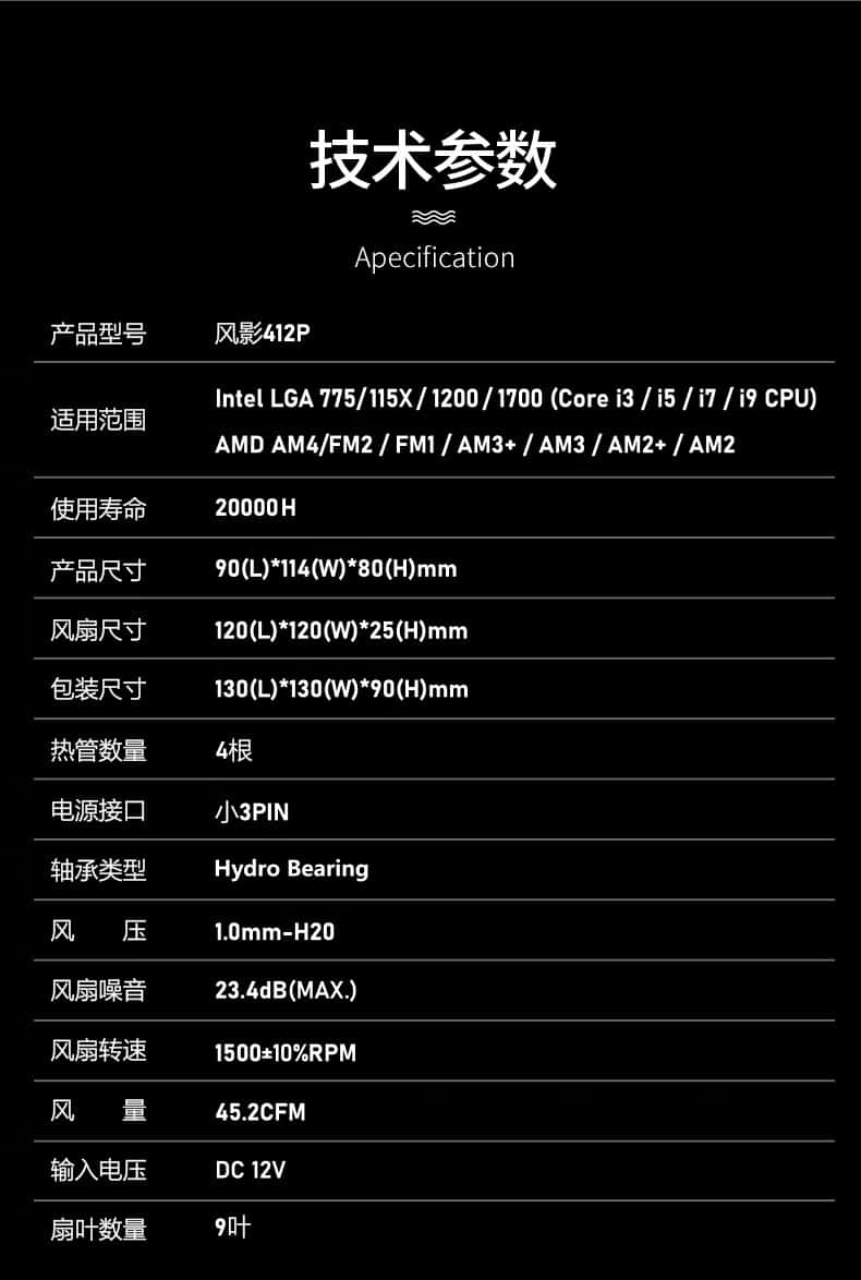 影驰风影412PCPU散热器(多平台/支持1700/支持AM