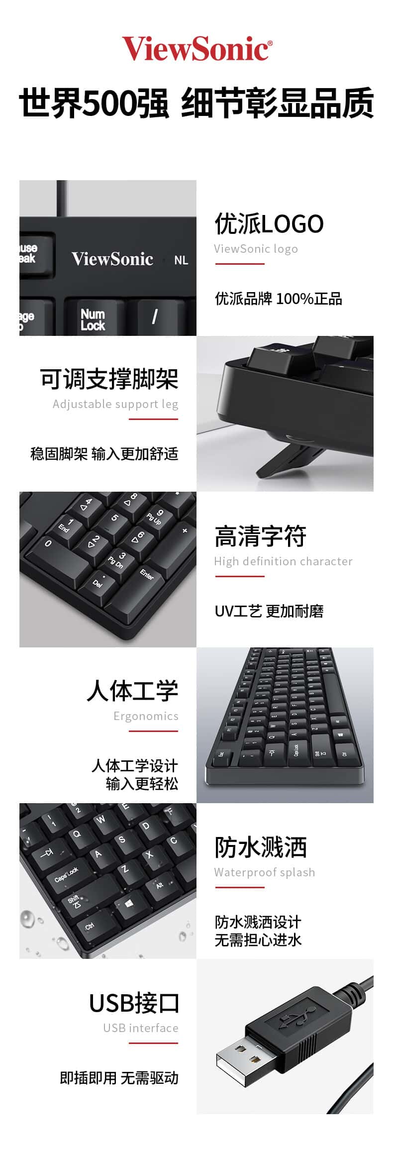 优派(ViewSonic)/KU254有线办公键盘/104键