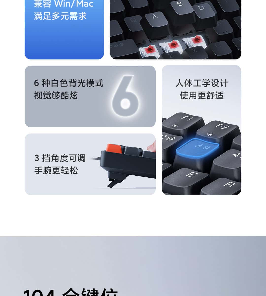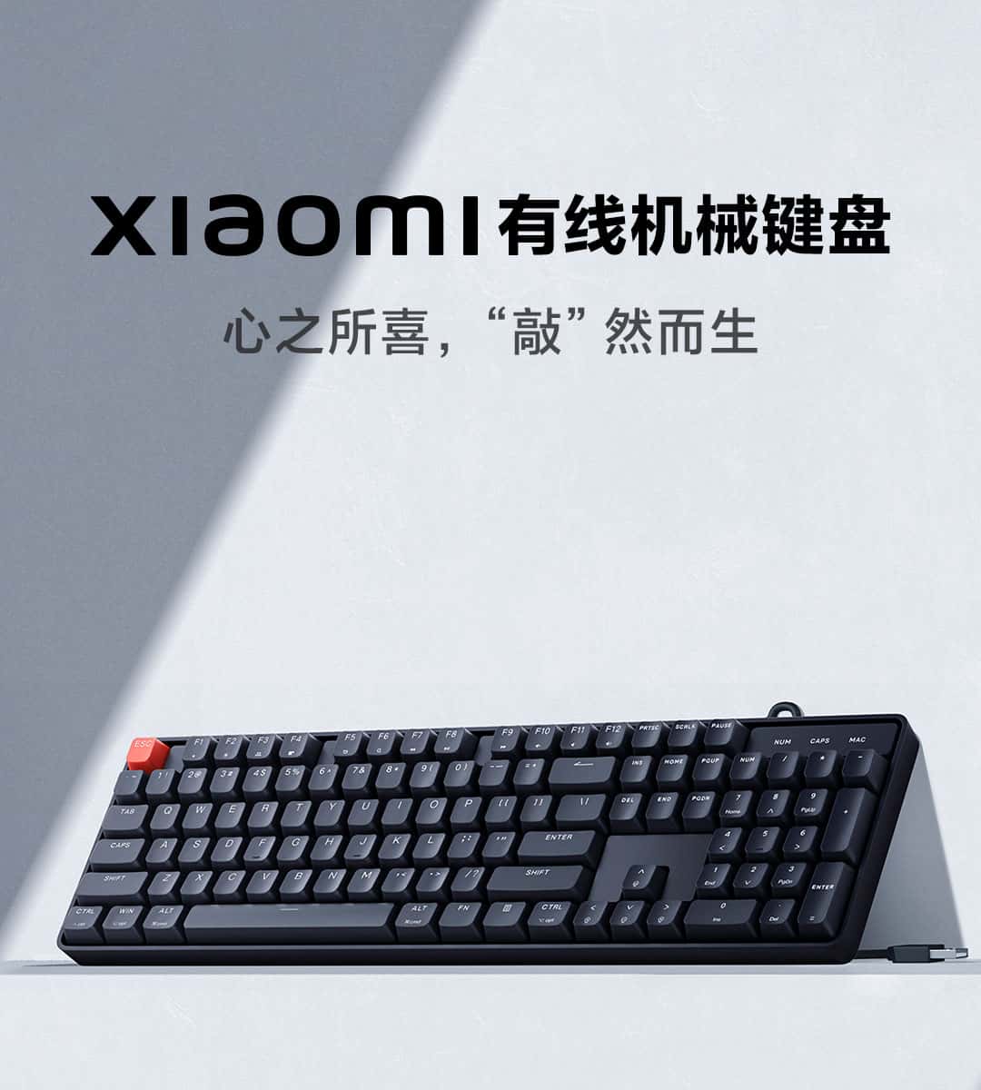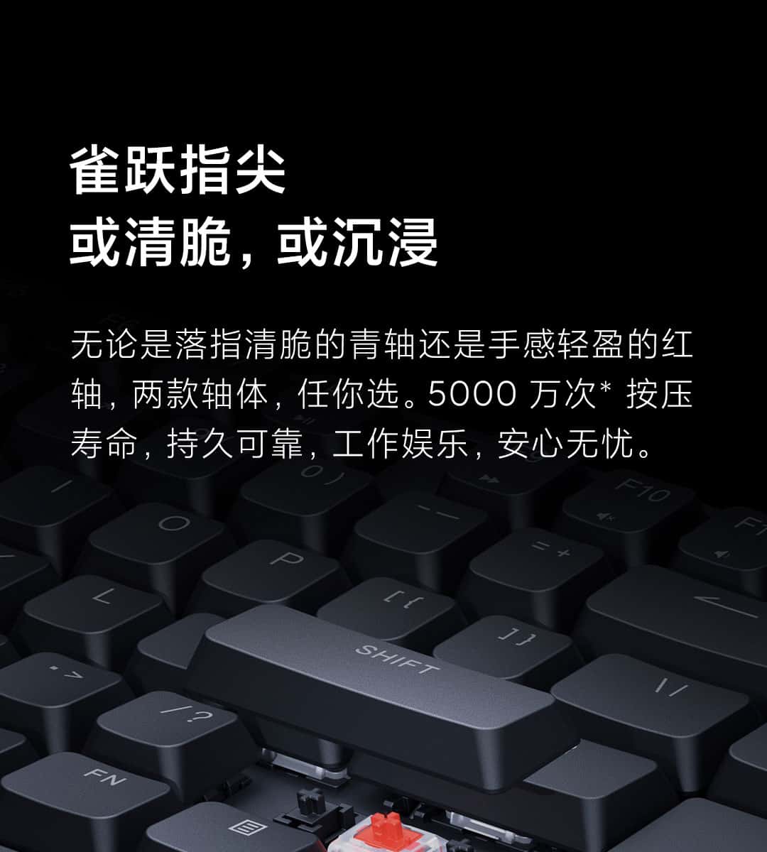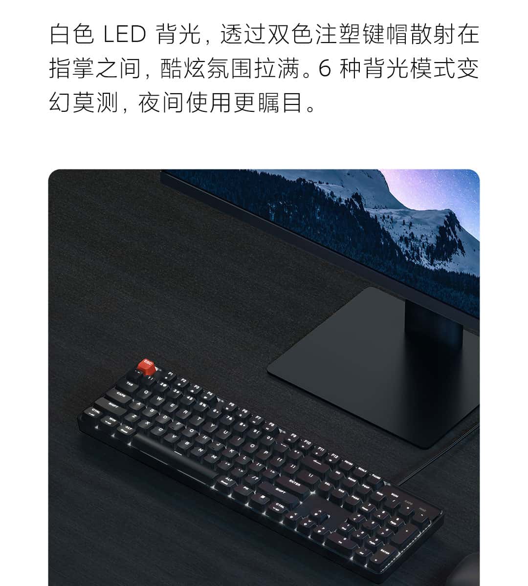小米有线机械键盘红轴104全键紧凑布局设计兼容Windows