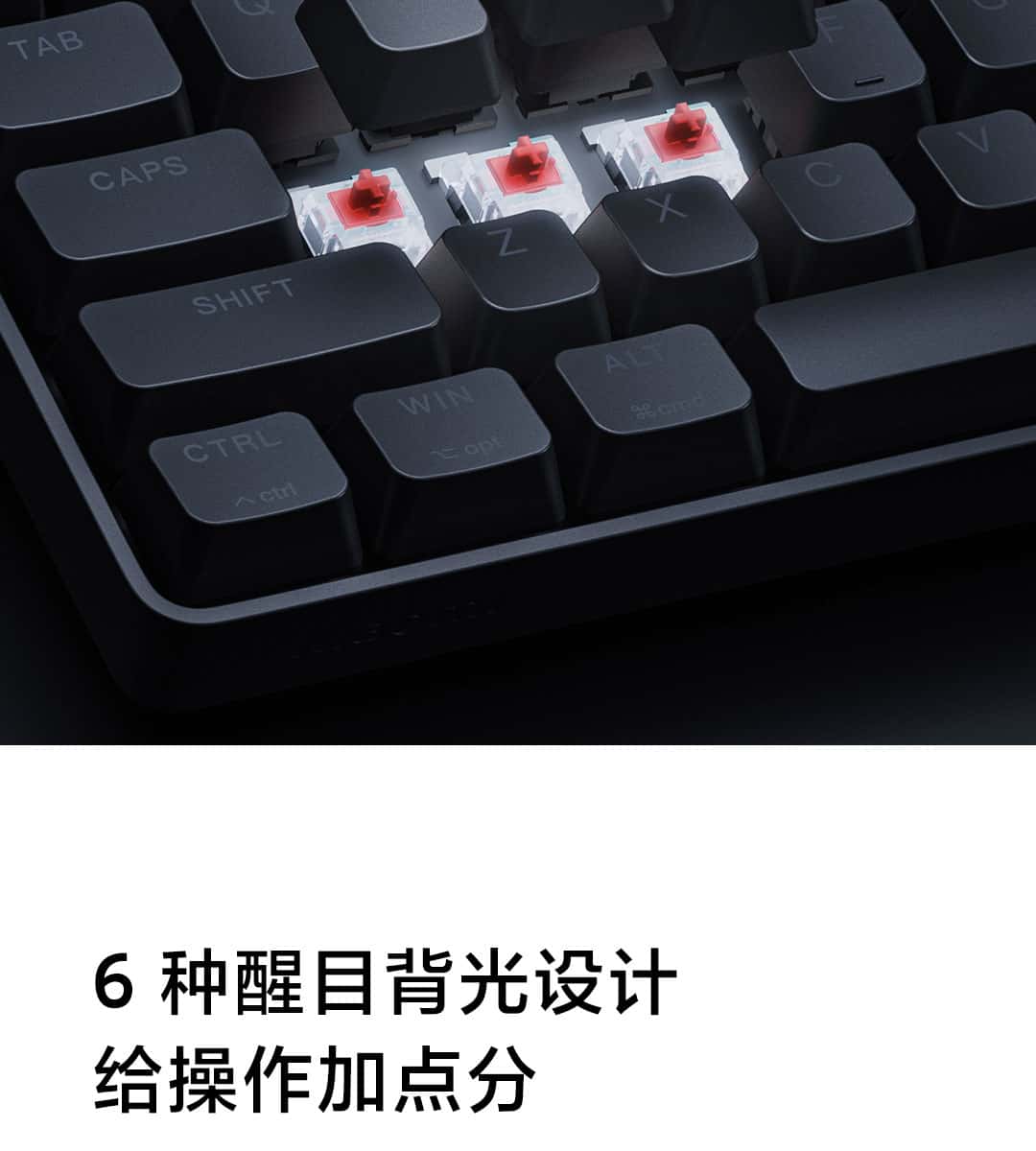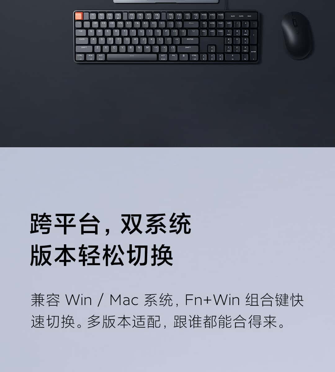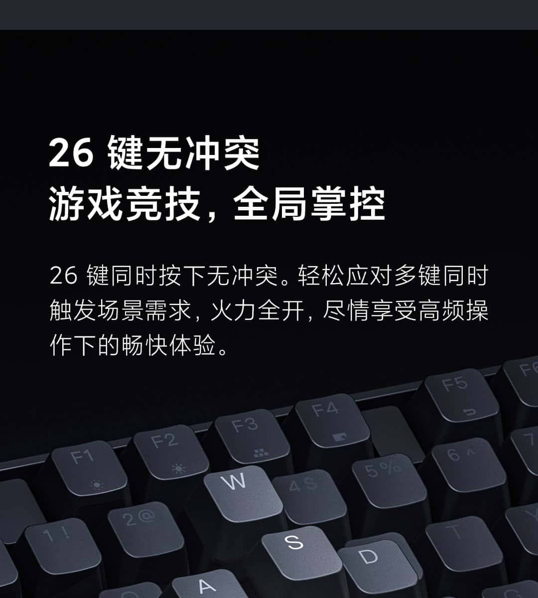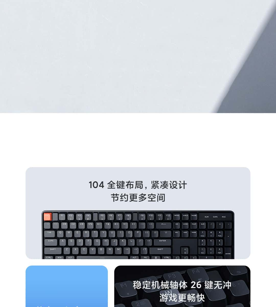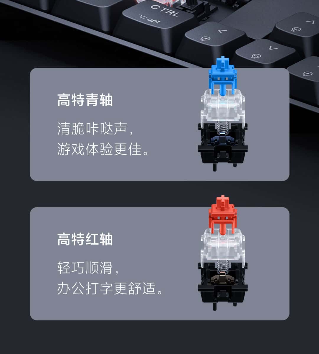 小米有线机械键盘红轴104全键紧凑布局设计兼容Windows