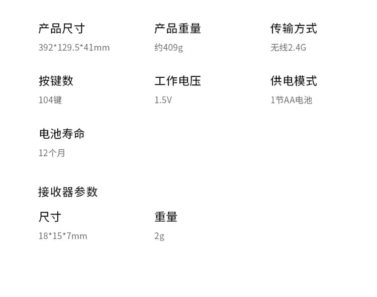 雷柏(Rapoo)E1050无线键盘办公键盘紧凑键盘防溅洒设