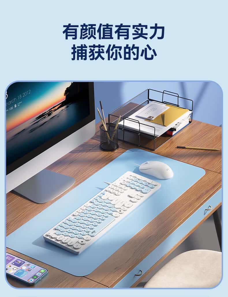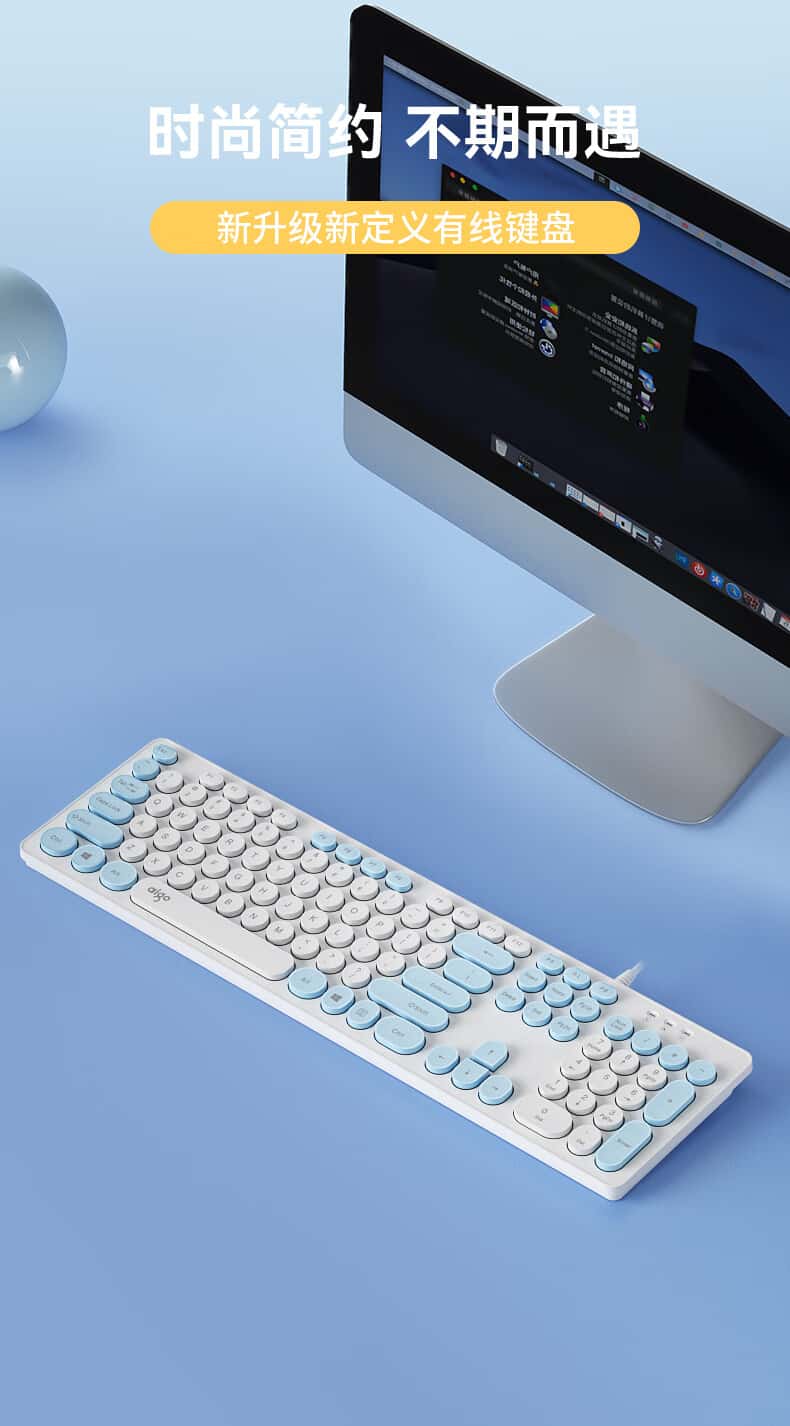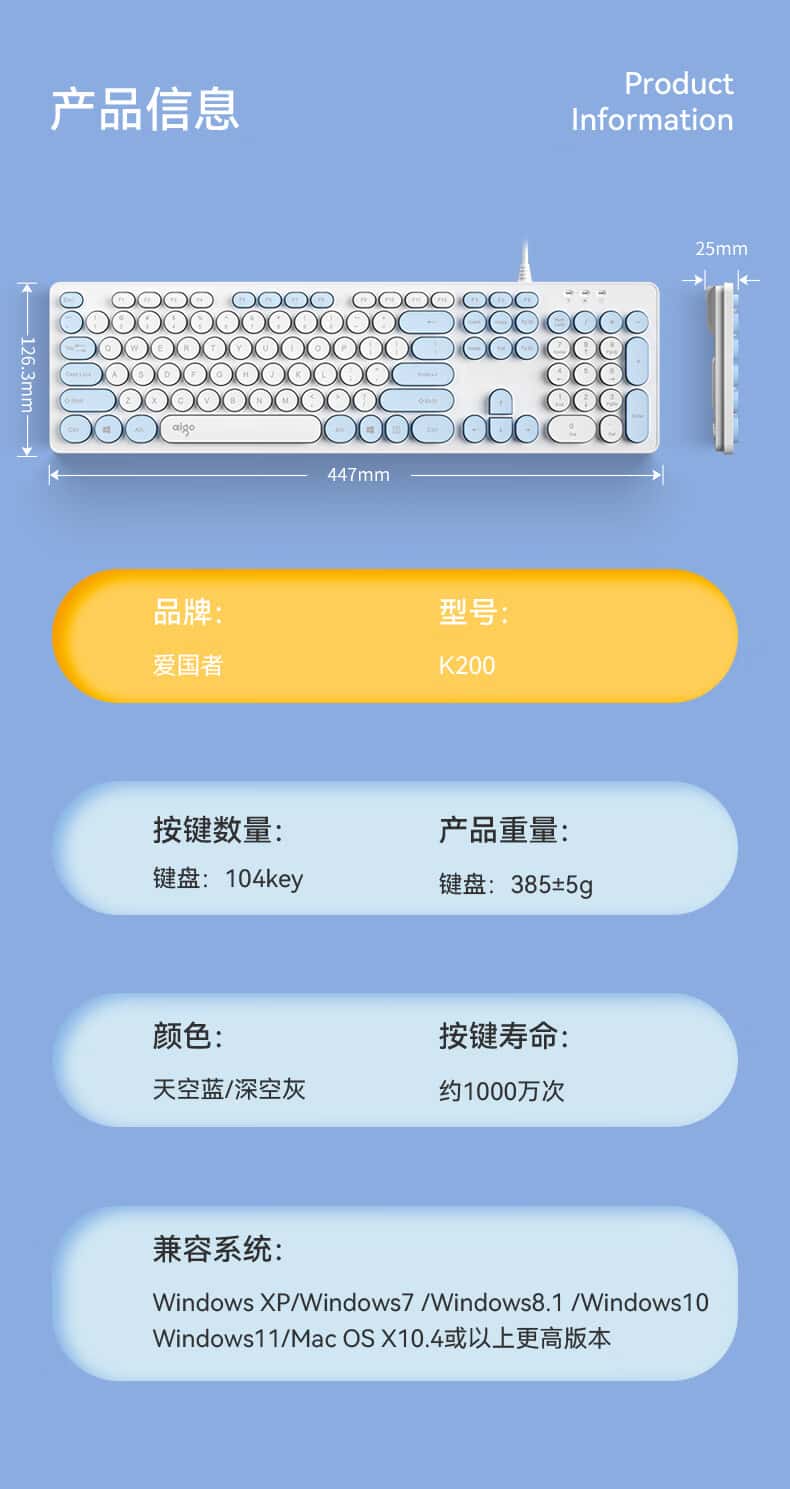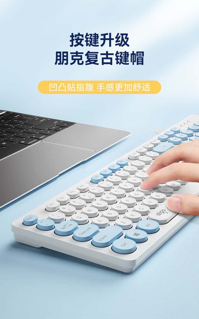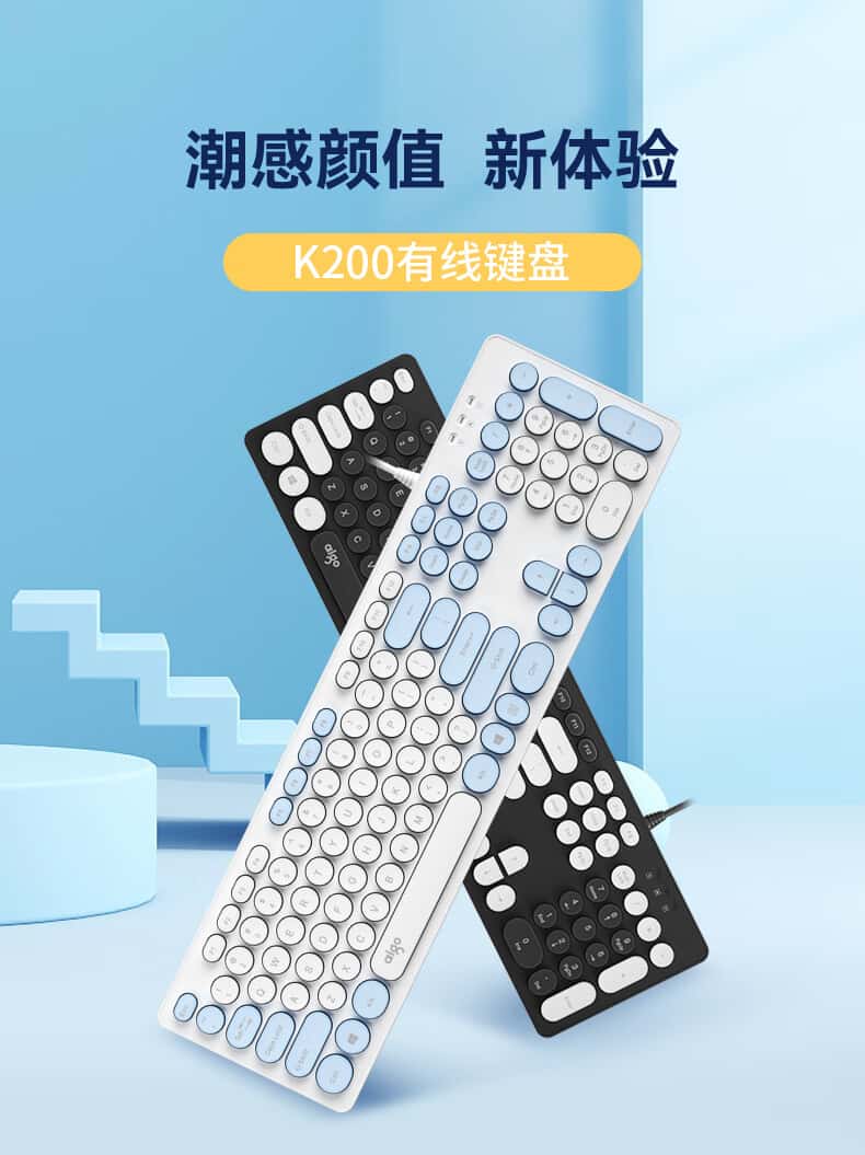 爱国者(aigo)K200有线键盘复古圆形拼色键帽USB即插