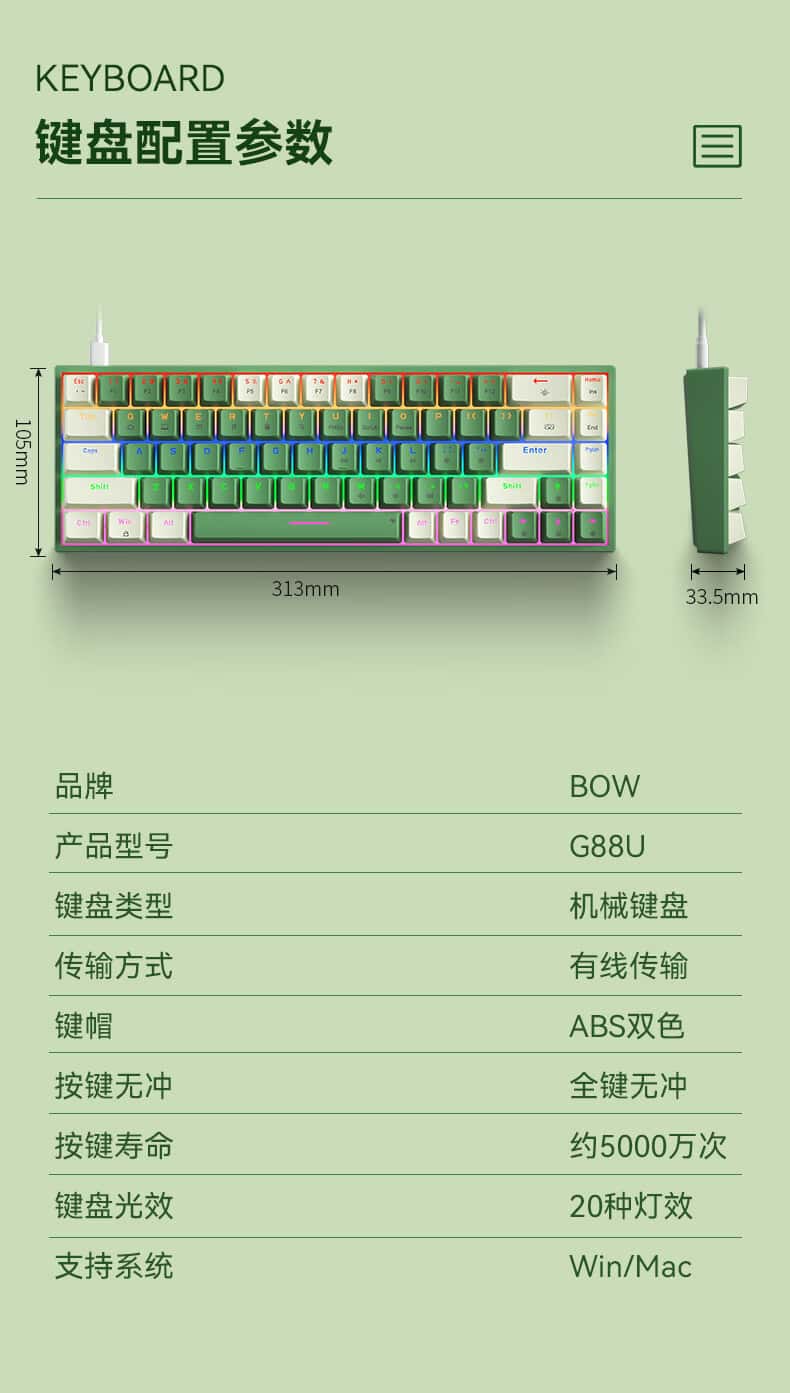 航世(BOW)G88U有线机械键盘电竞游戏客制化热插拔机械键
