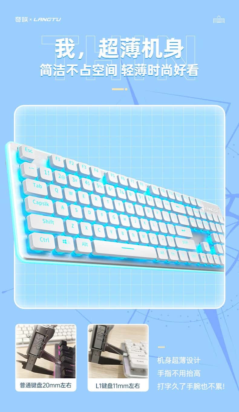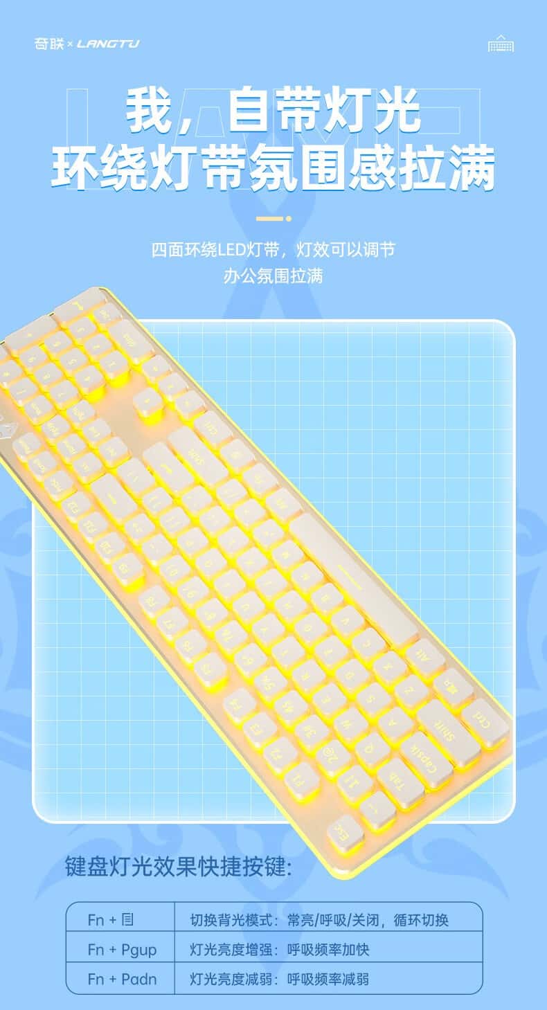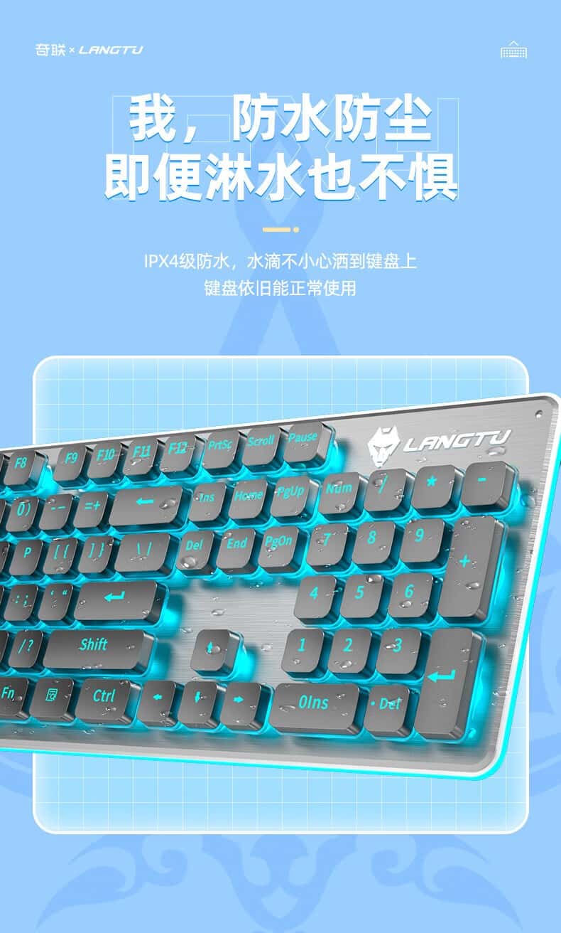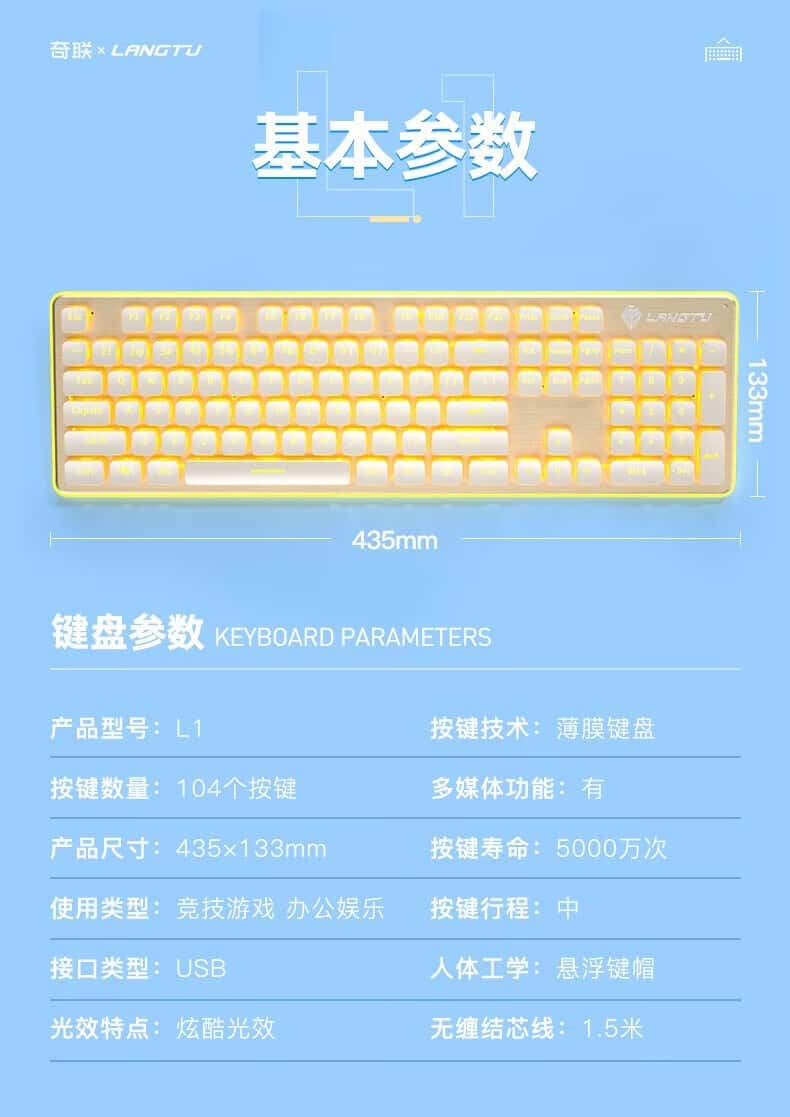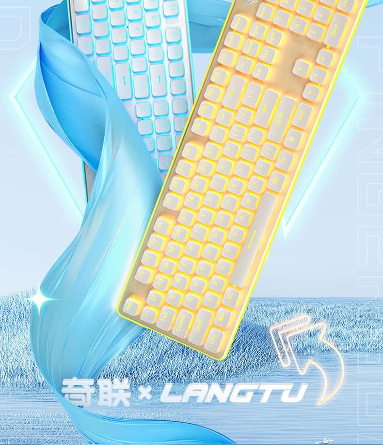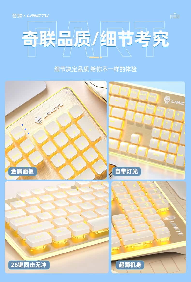 奇联机械手感键盘有线吃鸡LOL游戏电竞金属面板薄膜台式电脑笔