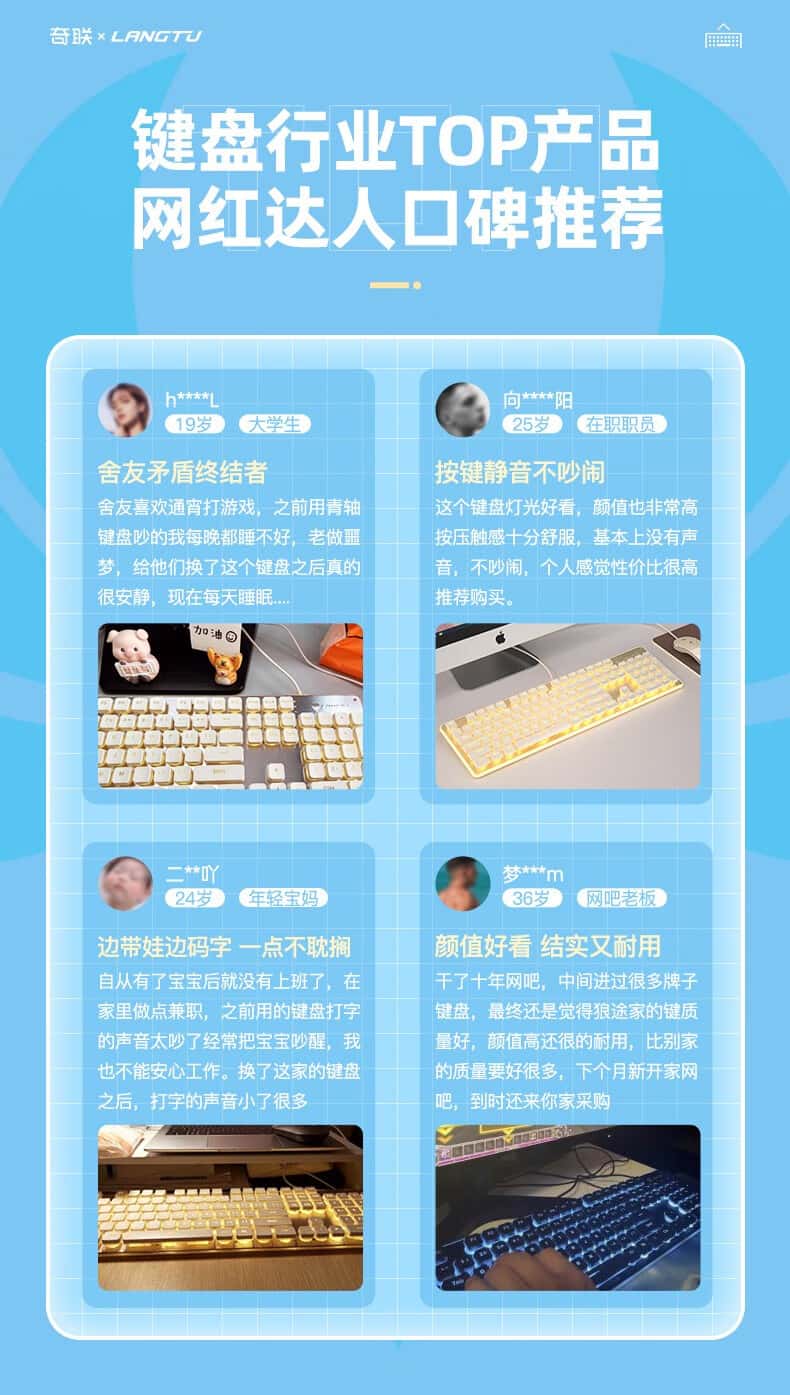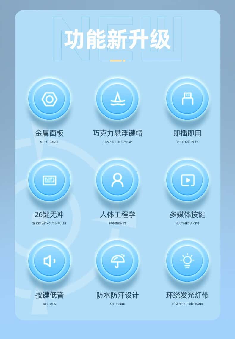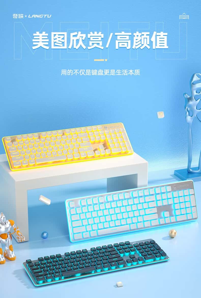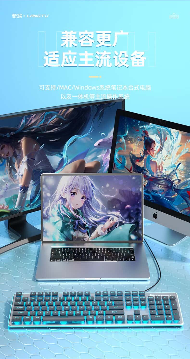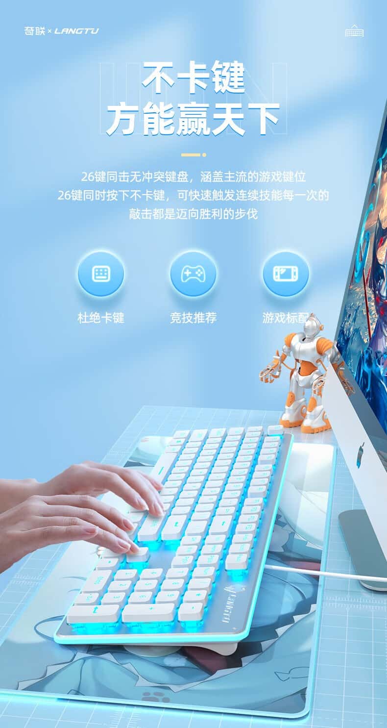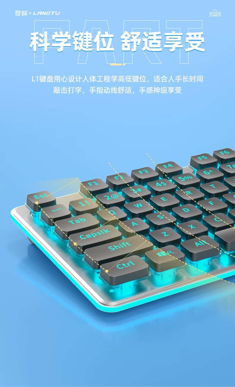 奇联机械手感键盘有线吃鸡LOL游戏电竞金属面板薄膜台式电脑笔