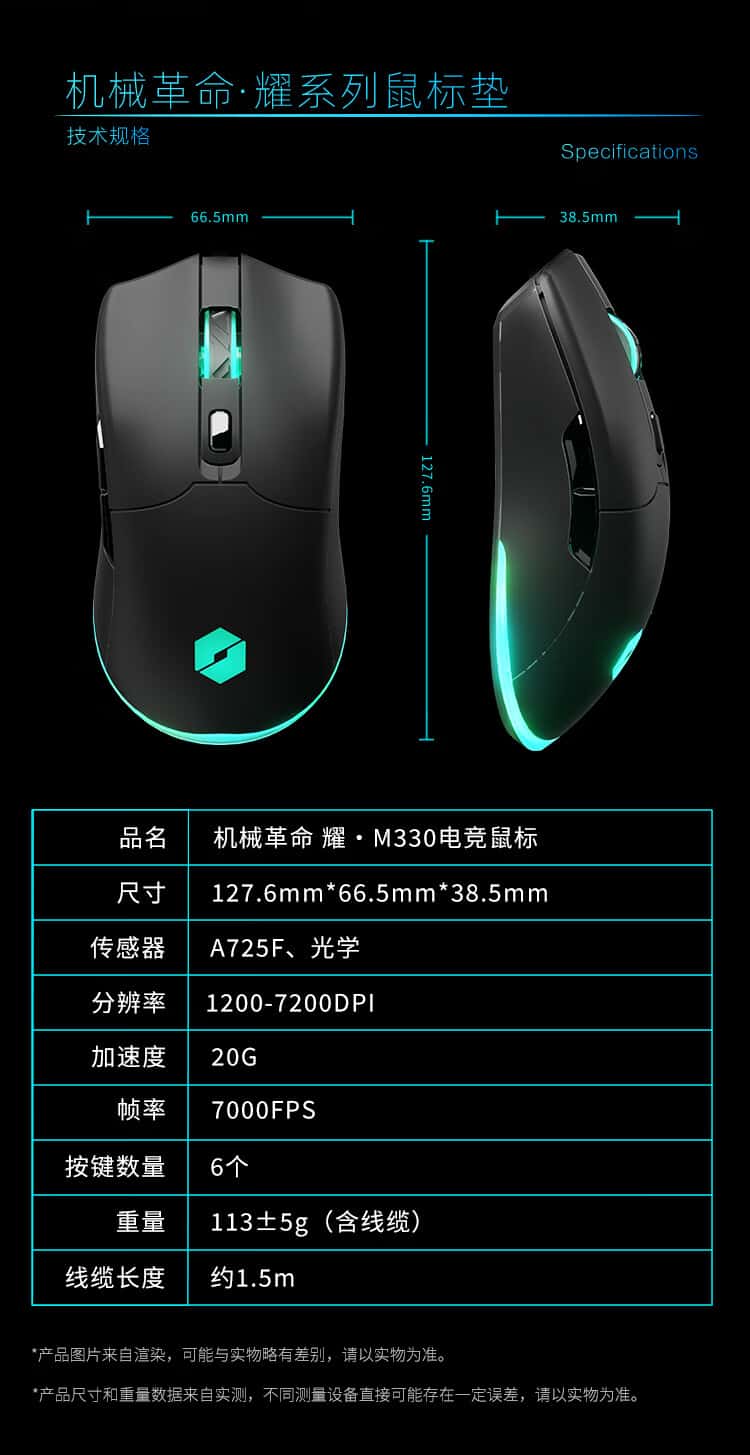 机械革命耀·M330有线鼠标游戏鼠标宏定义7200DPI可调